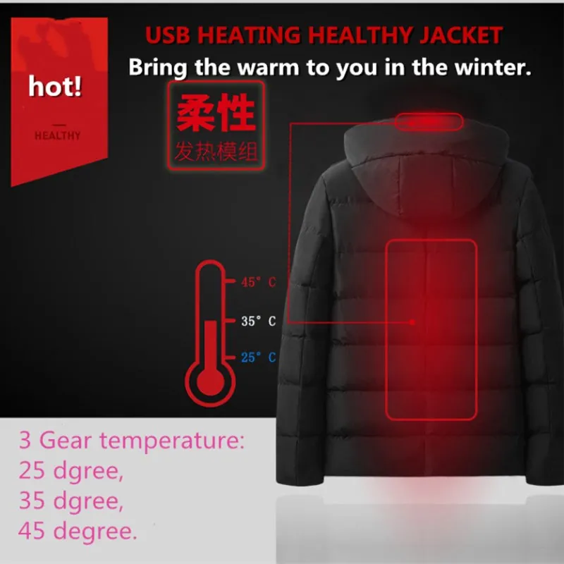 Flash Sale M-6XL Men's Winter 25-35-45 Degree 3 Gear USB Intelligence Heating Jacket Outdoor Women Camping Ski