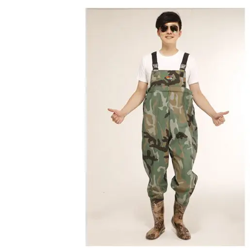 Promo 80 si waterproof camo PVC pants wading pants fishing water trousers with boots wear-resistant water