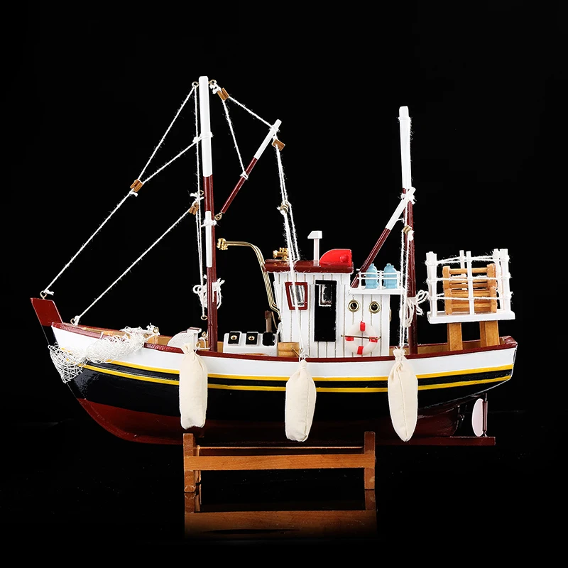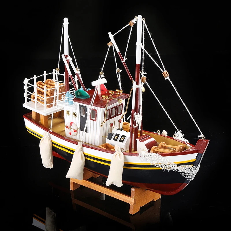 Promo Exquisite Wooden Fishing Smack Miniature Marine Wood Fishing Boat Scale Model Decor Gift Craft Orna